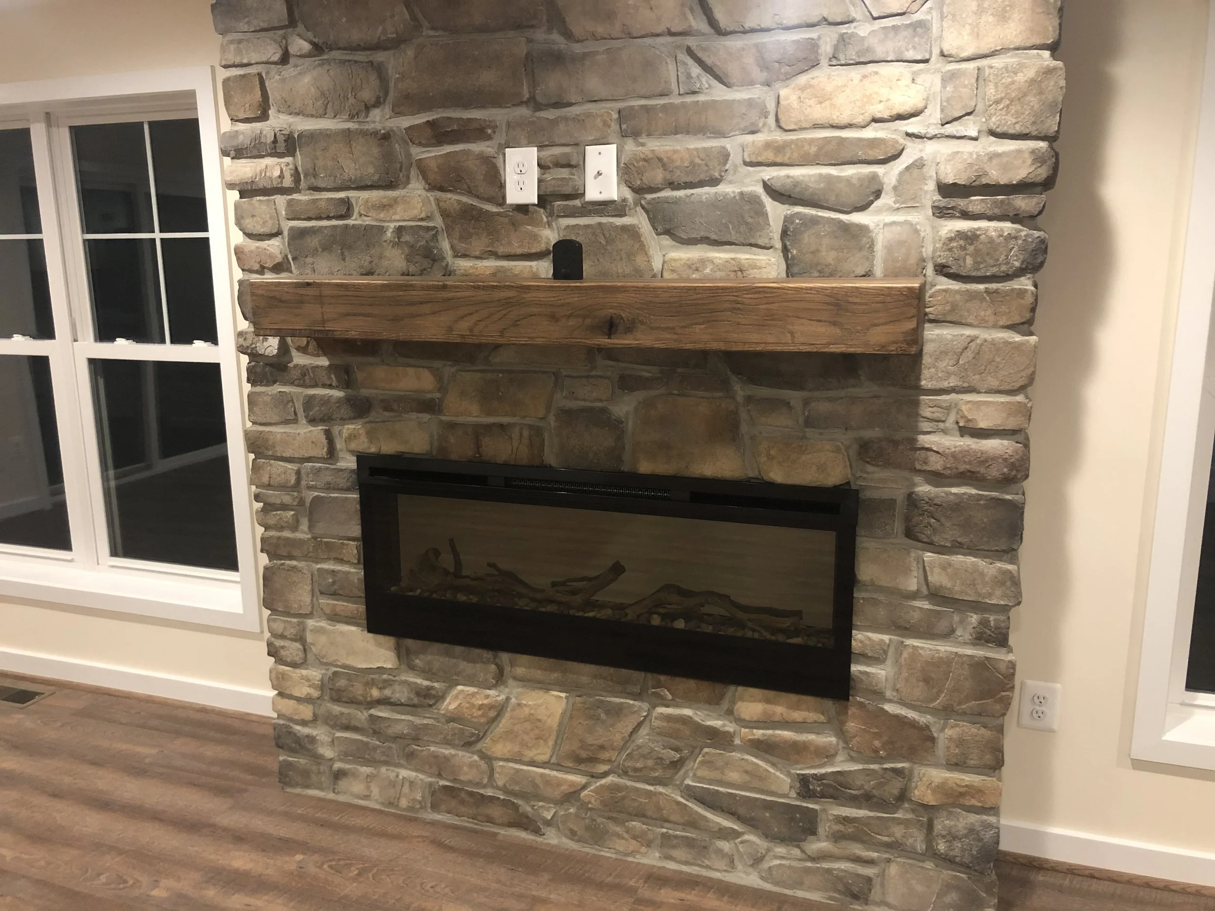Faux Stone Fireplace with Electric Insert and Custom Mantel